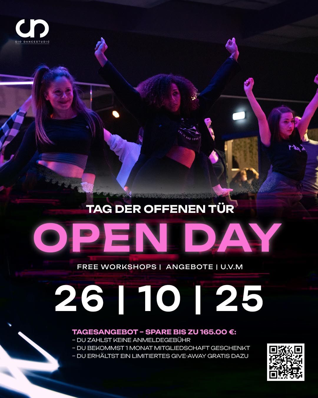 GIO DANCESTUDIO K1, 2, MannheimAm 26.01.2025 öffnen wir für euch und eure Liebsten unsere Türen und laden zum TAG DER OFFENEN TÜR ein. An diesem Tag geben wir euch gerne ein Einblick in unser Studio! Es warten viele tolle Angebote, kostenlose Workshops, Give-aways u.v.m Wir freuen uns euch. Euer GIO-TEAM! TAGESANGEBOT - spare bis zu 165.00 €: Du zahlst keine Anmeldegebühr Du bekommst 1 Monat…