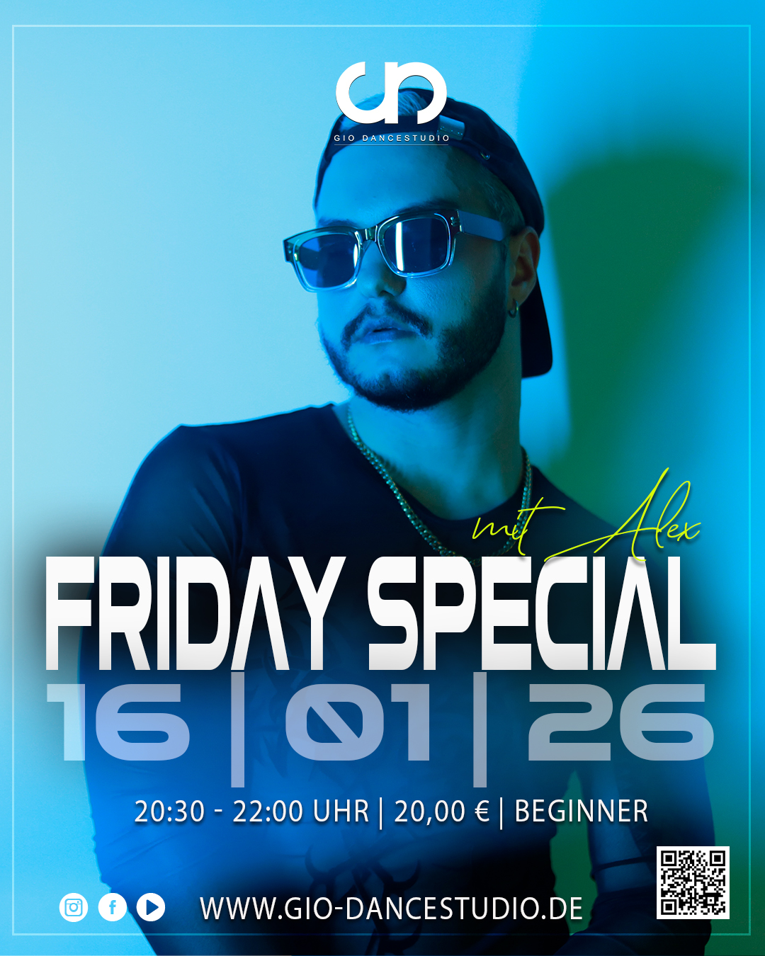 GIO DANCESTUDIO K1, 2, Mannheim💙 FRIDAY SPECIAL MIT ALEX ✨ MELDE DICH JETZT AN UND PROFITIERE VON SEINEM KÖNNEN UND KNOW HOW! Termin: 16.01.2026 Uhrzeit: 20:30 – 22:00 Uhr Style: Commercial Level: Anfänger Alter: ab 16 Jahre Preis: 20,00 € Location: GIO DANCESTUDIO | K1, 2 | 68159 MANNHEIM DIE TEILNEHMERANZAHL IST BEGRENZT! . JETZT ANMELDEN UND MITTANZEN! Bitte…